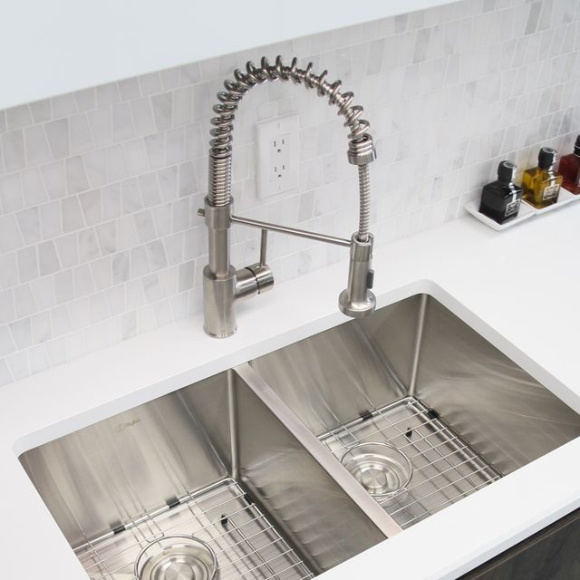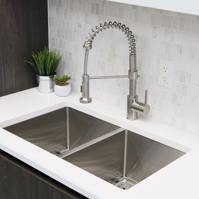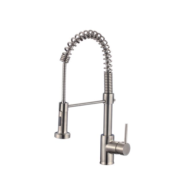 This commercial spring with pull down sprayer faucet brings a refreshed modern look to your home. Your kitchen will “pop” when you install this amazing faucet. The pull-down, dual action spray head on the pull down single handle kitchen faucet allows for your choice of aerated flow or powerful spray for all your modern kitchen needs. The 360° swivel spout extends up to 30″, and its spiral details and solid brass construction make it a highly functional and beautiful statement piece.?This kitchen faucet has been made with certified lead-free material and top-quality components ensuring lasting value and superior performance. One of the high-performance components is an ultra-durable Kerox ceramic cartridge which has been tested for over 500,000 cycles. Also, a best-in-industry Neoperl aerator that reduces the waste of water without sacrificing pressure. This commercial style kitchen faucet fits a standard 35mm hole. It is very easy to install and can be installed in a single or three hole deck plate. Our deck plates are not included with the purchase of this sink kitchen faucet. Included with the pull down kitchen faucet are the stainless steel braided cold and hot water hoses and installation instructions. Available in three finishes, brushed nickel, chrome and matte black. Make a bold statement and let your kitchen be the centre of attention when you install this commercial spring kitchen faucet, it will match any decorating style.