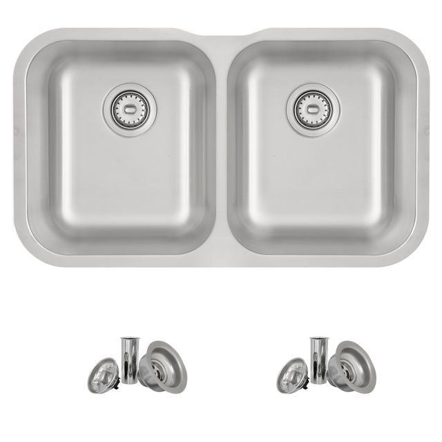Presenting our classic 31 1/4″ dual mount double bowl stainless steel kitchen sink crafted with premium 18-gauge stainless steel, combined with 18% chrome for rust resistance and enhanced with 10% nickel for strength and hardness. This sink includes solid metal strainers and mounting hardware. The strainers perfectly match the sink, while sound guard padding and spray-coating provide noise and thermal insulation. The commercial-grade brushed finish helps to preserve its appearance over time. This stainless-steel sink adds a striking touch to any kitchen. Upgrade your kitchen with our exceptional sink, blending functionality and style seamlessly.